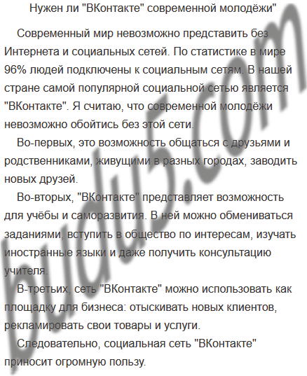 4. Напишите небольшое сочинение-рассуждение на одну из тем: *«Интернет — добро или зло?», «Нужен ли «ВКонтакте» современной молодёжи?».
